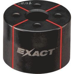 EXACT™ punches and dies have innovative features which bring value for the contractor. Heavy duty, they can punch holes in both mild and stainless steel material. Engraved crosshairs on the dies deliver clearest alignment with pre-drawn crosshairs. Both the tooth geometry of the punches and slug removal ports on the dies, provide optimal slug removal. Large size ID markings on both the punches and dies permit easy punch and die selection. EXACT™ punches and dies do not require spacers. Finally, notches on the punches allow for better grip during punch threading and de-threading. Altogether, EXACT™ punches and dies make the knockout process easier.