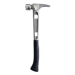 The Stiletto® TB15MC is a 15 oz Ti-Bone Milled Face Hammer with 18 in Curved Handle. The Hammer has a Patented Side Nail Puller that eases 16p nails out with one 180 deg motion and Stiletto® signature Magnetic Nail Starter. The TB15MC has the comparable striking force of 28 oz Steel hammer and is Recommended for Pole barn, Concrete, Framing and Remodeling. Stiletto® Tool Company has been synonymous with high quality hand tools dating back to 1849. With its long history and strong reputation, the brand has evolved into the modern day standard for innovative, lightweight, ergonomic, productive and professional tools. We set the standard with our line of premium titanium hand tools that span numerous trades such as framing, remodeling, finish work, siding, demolition, concrete and drywall. Titanium is 45% lighter weight while providing the same striking force and strength as steel. Titanium tools also produce 10 times less recoil shock which helps reduce carpal tunnel syndrome. The combination of these features means less down time, more productivity and most importantly less pain while working.