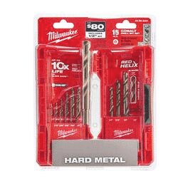 Milwaukee® cobalt RED HELIX™ drill bits are engineered for extreme durability and long life in hard metal applications. Designed with a Variable Helix™ that includes an aggressive 35 deg Helix Angle which ends at 15 deg, the cobalt bits with RED HELIX™ provide Rapid Chip Removal™ limiting heat build up to Stay Sharper Longer™. The 135 deg split point tip delivers a precision start and prevents walking for fast, accurate holes. Ideal for tough applications and provide upto 10X life vs. Black Oxide drill bits™ but can be used in all twist drilling applications.
