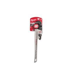 Milwaukee® 48-22-7218, 18 in Aluminum Pipe Wrench has been designed from the ground upto offer maximum productivity to the professional user. The 18 in Aluminum Pipe Wrench features and OVERBITE JAW™ design offering the largest gripping surface. Dual coil springs offer maximum durability and tool life and the ergonomic handle form has been designed for maximum comfort and won't dig into the palms. Through hardened jaws deliver increased grip and tooth durability and a tether-ready handle loop makes the Milwaukee® 48-22-7218 perfect for the toughest of jobsites. Milwaukee® stands behind their product and offers a Limited Lifetime Warranty with all pipe wrenches.