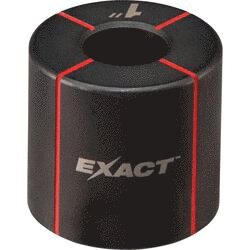 EXACT™ punches and dies have innovative features which bring value for the contractor. Heavy duty, they can punch holes in both mild and stainless steel material. Engraved crosshairs on the dies deliver clearest alignment with pre-drawn crosshairs. Both the tooth geometry of the punches and slug removal ports on the dies, provide optimal slug removal. Large size ID markings on both the punches and dies permit easy punch and die selection. EXACT™ punches and dies do not require spacers. Finally, notches on the punches allow for better grip during punch threading and de-threading. Altogether, EXACT™ punches and dies make the knockout process easier.