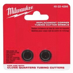 The Milwaukee® 2-piece replacement cutter wheels are designed for use with Milwaukee® close quarters tubing cutters. Milwaukee® replacement blades are constructed with high carbon steel for long life. Precision grinding delivers a sharp cutting edge. Optimized for cutting copper tubing.