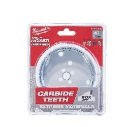 Our Milwaukee® Hole Dozer™ with carbide teeth is the best hole saw solution for metal and multi-material applications. The Hole Dozer™ provides 50X life in extreme metal and multi-material cutting compared to other bi-metal hole saws. A tough carbide grade is combined with a durable 4 TPI tooth design, yielding the best durability and longest life in stainless steel, abrasive material and fastener embedded wood applications. The Hole Dozer™ has a cutting depth of 1.62 in, allowing clearance to handle cuts in a wide range of materials. Thermoset coating on the saw reduces friction and drag during cutting, generating cordless efficiency for faster cutting in all applications. The material slug is easy to remove with the Plug Jack™ T-Slot. Plug Jack™ enhances user productivity by providing the best access and leverage to remove material slugs. All Hole Dozer™ products are made in the USA.