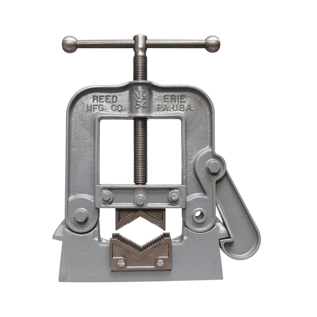 Yoke vises permit the strongest jaw-to-jaw gripping of pipe for high-torque applications like threading. Reed yoke vises are made of ductile or malleable iron and have hardened, high carbon steel jaws for toughness and long life. These yoke vises easily convert from right- to left-hand operation and back, making it simple to work around obstructions or to accommodate right- or left-hand user preference.