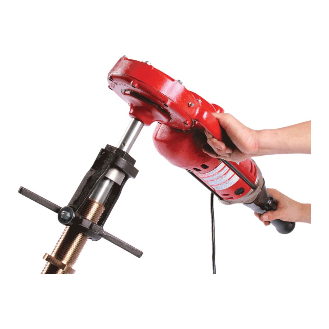 The 700PDTMPDA (electric) or 700APDTMPDA (pneumatic) power tapping/drilling machines are heavy-duty workhorses designed for constant, everyday use. Units consist of the selected power drive and a TMPDA adapter which fits a 13/16 in square end boring bar that is common on popular drilling and tapping machines. The operator manually turns the star feed on the tapping or drilling machine while the power drive adapter turns the boring bar.