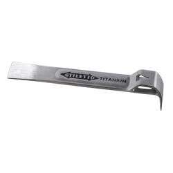 The Stiletto® 7.5 in All-Titanium Multifunctional Glazer Bar combines lightweight titanium construction with an extra-strong arched design. It weighs just 3.2 oz, but the compact bar provides all the leverage you need to set windows or doors, even in tight quarters. Remove door staples up to 3/16 inches long with the Stiletto® 7.5 in glazer bar's patent-pending mid-bar staple puller, or use its two patent-pending multi-fulcrum pullers to remove nails or staples from trim and molding. This Stiletto® bar is 1.5 in wide, 1.5 inches tall and 7.5 in long, so it fits in any toolbox or nail pouch. The product's flat tip also makes it an excellent scraping or prying tool for light to moderate demolition and cleanup tasks.