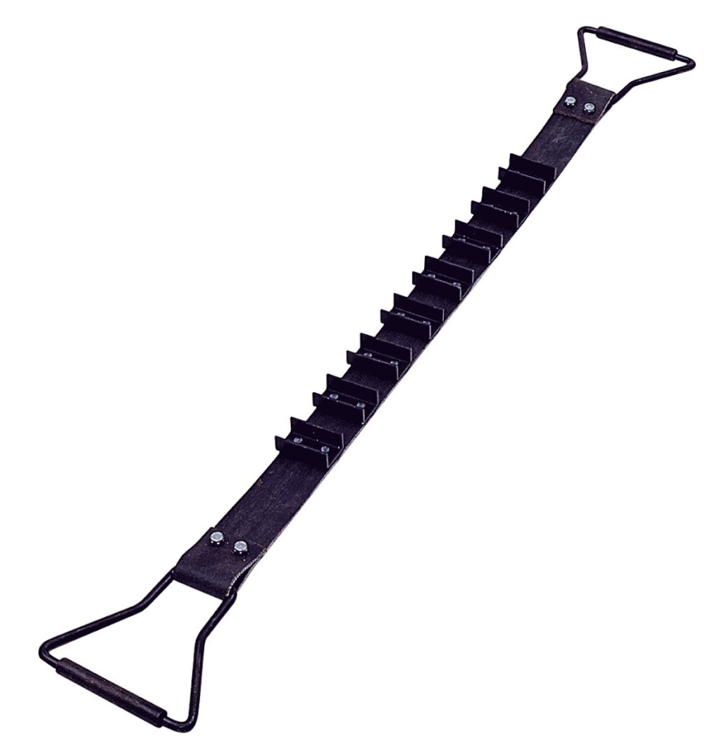 Wide, tough scrapers remove scale, dirt and corrosion quickly from the pipe surface to allow more effective cutting, joining, gasket/valve seating or other operations. Pipe descales are faster and more effective than chisels, chains or files and need only 2 in of clearance around the pipe. Use them to clean pipe before cutting or water tapping or drilling. Roller handles allow smooth movement in use. DS12 and DS36 chain descales are made entirely of steel that is zinc-plated for corrosion resistance and toughness. The sharp metal scrapers dig in fast to remove dirt and debris. They are welded on for long life and can be sharpened. Also, Reed produces a heavy-duty power transmission belting pipe descaler, DS12B. Its handles and scrapers are blackened for good rust protection. Belt descaler benefits include lower cost and lighter weight than all-metal descales, longer length to ease back strain during use and high-profile scrapers to reduce dirt clogs. Reed offers a replacement belt (for DS12B only) with scrapers attached; simply bolt the new belt onto the handles.