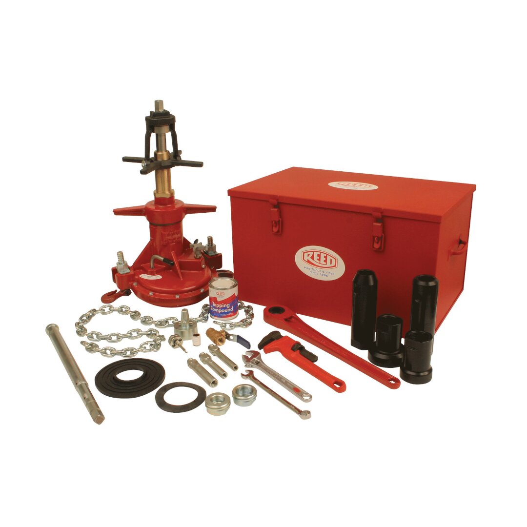 Combination Drilling/Tapping Machines are easier to use, save operating time, and are a better value than any other machine. The CDTM models are tapping machines with the necessary components for conversion to drilling machines. The CDTM1100 is a TM1100 with components for converting to a DM1100. The CDTM2100 is a TM1100 with components for converting to a DM2100. All these combination models feature Reed's flip clamp. They utilize Reed DT series drill taps and Reed D series drill bits, hole cutters, heavy-duty hole cutters, and PVC shell cutters. Drill taps, drill bits, and hole cutters must be purchased separately. NPT adapters also available. Spec sheet / Conversion chart available #01071.