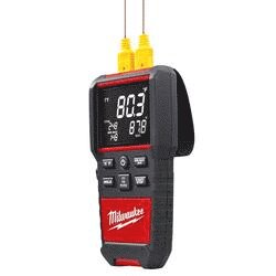 Heavy duty contact temperature meter for professional industrial, commercial and residential applications. The perfect tool for the professional, commercial or industrial vacuum and service technicians includes the features that are needed to get the job done in the field, on-site or in the plant. Milwaukee® 2270-20 contact temperature meter measures temperatures from 2500 to -328 deg F (1372 to -200 deg C) to cover a wide range of applications dual temperature measurement for faster measurement of heating and cooling systems timer function for easy tracking of minimum, maximum and average temperatures over time accurate to 0.1PERC of reading 0.7 C for correct measurements every time high contrast white on black display for easy reading in all conditions magnet strap for hanging meter in all applications.