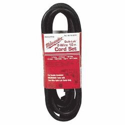 This Milwaukee® QUIK-LOK™ cord is a two wire double insulated 10 foot cord for fast field replacement of a damaged cord. Made of premium grade Hi-Flex wire the cord is quickly removed and attached to Milwaukee® tools with the QUIK-LOK™ cord feature. To change a damaged cord simply turn the collar at the top of the cord counter clockwise to loosen the nut and pull down on the cord to remove. To re-attach a new cord, line up the pins in the end of the tool with the pin receptacles in the end of the cord, push together and turn the collar clockwise to lock in place. Cord has a 1-15P NEMA type plug.