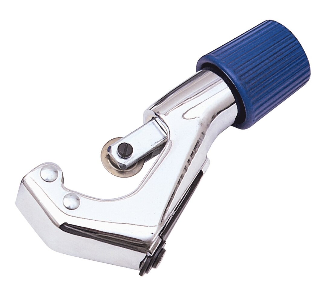 Reed tubing cutters are equipped with special wheels for stainless steel. Reed wheels for stainless tubing use specialized steel for toughness and heat dissipation, resulting in long wheel life. T10SS, T15SS and T20SS tubing cutters offer a large knob for firm grip and easy turning, along with an internal reamer in the knob. TC11SS telescoping tubing cutter includes a fold-out reamer and spare wheel for stainless tubing.