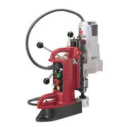 Drill easily into any metal 1/2 in or thicker. This combination unit features the 4202 fixed-position, variable-speed base and 4262-1 3/4 in drill motor. A heavy duty unit built for production drilling, this 12.5 A drill motor can handle the toughest drilling jobs with upto a 3/4 in threaded hole capacity. The unit runs at 350 no-load RPM, geared low for maximum torque. It can produce upto 1630/1670 lb of drill point pressure with a 1 in steel plate. Feedback speed control helps you maintain speed and the motor/magnet lockout prevents demagnetization during operation. This unit features a 3/4 in chuck for fast and easy bit changes while eliminating slippage and breakage. The dual-mount gear case with reverse mount permits tight quarter drilling.
