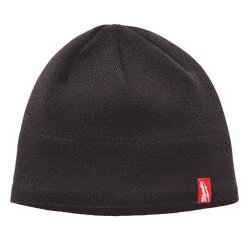 The Milwaukee® fleece lined knit hat features a fleece band around the ears to block wind and provide extra warmth in cold conditions. Beanie style construction allows for easy use under a hard hat. Durable 98% polyester, 2% spandex construction resists snagging and manages moisture to help prevent sweating and overheating. Product intended for cold weather use.