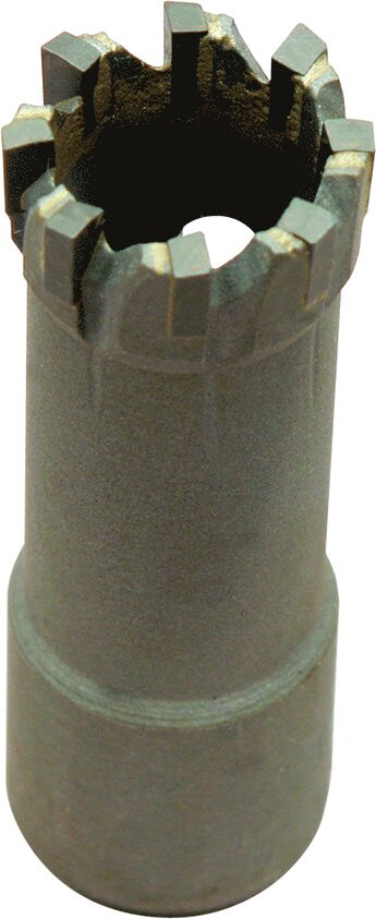 Shell cutters cut up to 2 in deep and fit most standard arbors and competitive machines such as Aquatap and Ford Simtap. These shell cutters are recommended for cast and ductile iron, in use with Reed's Feed Tap machines. The attachment thread is 1/2 - 20. Each shell cutter tooth has carbide inserts which long outlast bi-metal teeth.