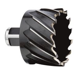Milwaukee® HSS annular cutters offer a thin wall construction with an advanced tooth geometry that cuts and cleans while drilling, leading to faster holes and longer life. The cutters displace less material for the same size hole as the competition, giving you fast, burr-free holes in anything from sheet metal to thick plate steel. All Milwaukee® HSS annular cutters have a 3/4 in weldon shank for use with most small magnetic drill presses and large magnetic drill presses with the correct arbor.