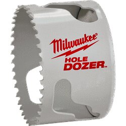 Made in the USA, the Milwaukee® Hole Dozer™ hole saw features Rip Guard™, the strongest tooth form in the industry, backed by the Rip Guard™ limited lifetime tooth break warranty. Each tooth is built with more steel behind the cutting edge for added strength. The Rip Guard™ warranty on tooth breaks is a first for the hole saw industry. The added tooth strength along with 8" cobalt give added life to the teeth, allowing for increased productivity on the jobsite, as well as continued hole quality. The Hole Dozer™ includes Plug Jack™, an all access slot design that allows for full access during plug removal. The Plug Jack™ gives access lower into the cup for thick material and higher towards the teeth for thin material. With multiple positions to apply leverage and better plug access, Plug Jack™ increases productivity and eliminates wasted downtime between holes. For fast, tool-free change-outs, use Milwaukee® universal quick-change arbors.