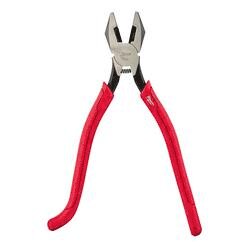 The Milwaukee® ironworker's pliers feature hardened jaws with an optimized blade angle for cutting and twisting rebar tie wire. The Ironworker's pliers offer an iron carbide edge for 2X more cutting life versus competitive models. Curved handles designed specifically for constant motion feature comfort grips that will not peel or dig into hands during extended use. The ironworker's pliers offer a durable forged design and rust protection.