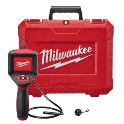 The Milwaukee® 2309-20 M-Spector™ inspection scope kit (9 mm) delivers professional diagnostics in hard to reach places. With the smallest camera head in class (9 mm), the M-Spector™ allows you to quickly inspect behind walls, in vents, pipes and other hard to reach places. The digital inspection scope provides best-in-class image quality. Crisp, clear images jump off the large 2.7 in LCD display. Four LED lights surrounding the inspection scope provide superior brightness without shadow or glare. The 3 ft cable is enhanced for added durability. The M-Spector™ inspection scope kit includes a pipe guide attachment for improved manoeuvrability in pipes and is also compatible with Milwaukee® hook, magnet and mirror attachments (sold separately) for greater versatility.