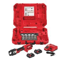 The M18™ FORCE LOGIC™ 600 kcmil crimper is the most accurate way to crimp producing cULus classified crimps according to the UL 486A-B classification standards for #8 to 600 kcmil Cu and #8 AWG to 350 kcmil dual-rated Anderson, Blackburn® Burndy, Ilsco, Panduit, Penn-Union and Thomas and Betts connectors. Utilizing Milwaukee® U-style dies that feature vivid wire size markings, industry standard color markings and imprint wire size onto the connector after crimp completion, commercial electricians benefit from its ease of use and easy inspection. A new jaw design holds the connector for instant alignment and predictive force monitoring (PFM™) ensures proper pressure is reached on every crimp. PFM™ actively measures pressure and automatically modifies all performance levels of the system allowing the high speed hydraulic pump to power through the beginning of a cycle and land at precisely the right pressure, protecting internal components, to complete the crimp. The result, Milwaukee® crimpers are the most accurate, fastest and most durable crimpers in the world. Milwaukee® crimpers feature a fully enclosed high speed hydraulic pump, POWERSTATE™ brushless motor, REDLINK™ electronics and REDLITHIUM™ batteries delivering ultimate reliability in the toughest conditions and up to 4X longer life. Featuring Milwaukee® ONE-KEY™ technology, Milwaukee® crimpers enable you to store real time crimp data, generate professional reports, view historical tool performance data and sync it all wirelessly to the cloud for easy access. The kit includes 8 AWG to 600 kcmil copper U-style dies, (2) M18™ 2.0 REDLITHIUM™ batteries, M18™ and M12™ multi-voltage charger and a carrying case that also accommodates 15 sets of U-style dies.