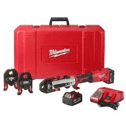 The M18™ FORCE LOGIC™ long throw press tool is the smallest, most intelligent extended length press tool on the market. An adjustable stroke length delivers optimized cycle time on 1-1/2 to 2 in Grinnell® stainless steel press connections. The press tool's in-line design offers unrivaled access for navigating around installed pipes, while also delivering on the highest level of press accuracy and reliability. Utilizing Redlink™ intelligence, the M18™ FORCE LOGIC™ long throw press tool features auto cycle and a pre-press battery check to prevent partial presses and provide the user peace of mind. With a green LED indicator, the tool visually indicates both a completed press cycle and when calibration is needed. Delivering the longest calibration interval in the industry, the tool will operate 50000 cycles before calibration is needed, keeping the tool on the job to maximize return on investment. Powered by the M18™ REDLITHIUM™ battery pack, this is the only press system where you can cut, fasten and connect on one system.