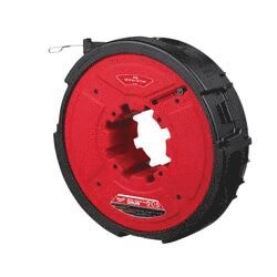 Our M18™ FUEL™ ANGLER™ 120 ft x 1/8 in steel pulling fish tape drum is part of the world's first battery powered fish tape solution. The steel fish tape puller features our AUTO-RUN™ powered feed and retract that eliminates manual operation for less user fatigue and automatically reels the tape back into the drum for a cleaner jobsite. The steel fish tape puller has blue tempered steel tape for improved flexibility and durability with an anti-catch tip for continuous fishing. This Milwaukee® ANGLER™ has the ability to pull wire through a 120 ft run with 360 deg of bends and is compatible with any of our 4 anti-binding steel and non-conductive drums to tackle any situation.