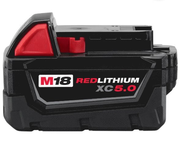 Delivers upto 2.5X more run-time, 20" more power and 2X more life than standard 18 volt lithium-ion batteries. The M18™ REDLITHIUM™ XC5.0 Extended Capacity Battery Pack features superior pack construction, electronics and performance to deliver more work per charge and more work over the life of the pack than any battery on the market. The M18™ REDLITHIUM™ XC5.0 Battery features an advanced design, protecting the pack against harsh jobsite environments. This protection routes water away from the electronics and out of the battery pack, extends run-time and life by minimizing heat and prevents pack failures from vibration or drops. This unique to Milwaukee® design also allows the battery to operate in extreme cold weather conditions (below 0 deg F/-18 deg C). Managed by Milwaukee® exclusive REDLINK™ Intelligence, the battery features overload protection to prevent you from damaging your cordless power tools in heavy duty situations, while the discharge protection prevents cell damage. It also provides full system compatibility with 60 M18™ cordless solutions. Upgrade to the M18™ REDLITHIUM™ XC5.0 Battery Pack to instantly increase the run-time and durability of your M18™ cordless tools.