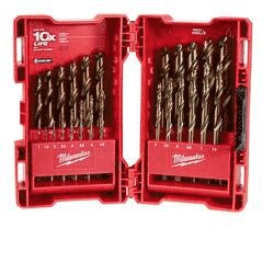 Milwaukee® Cobalt RED HELIX™ drill bits are engineered for extreme durability and long life in hard metal applications. Designed with a Variable Helix ™ that includes an aggressive 35 deg Helix angle which ends at 15 deg, the cobalt bits with RED HELIX™ provide rapid chip Removal™ limiting heat buildup to stay sharper Longer™. The 135 deg split point tip delivers a precision start and prevents walking for fast, accurate holes. Ideal for tough applications and provide Up to 10X life vs. Black oxide drill bits but can be used in all twist drilling applications.