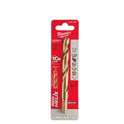 Milwaukee® cobalt RED HELIX™ drill bits are engineered for extreme durability and long life in hard metal applications. Designed with a Variable Helix™ that includes an aggressive 35 deg helix angle which ends at 15 deg, the cobalt bits with RED HELIX™ provide Rapid Chip Removal™ limiting heat build up to Stay Sharper Longer™. The 135 deg split point tip delivers a precision start and prevents walking for fast, accurate holes. Ideal for tough applications and provide upto 10X life vs black oxide drill bits but can be used in all twist drilling applications.