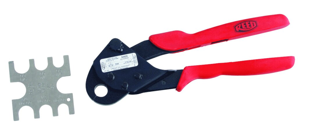 PEX Crimpers squeeze the copper rings used on PEX brass fittings. PEX Crimpers systems are used for potable water lines, radiant heat, snow melt and ice rink systems, among other applications. The design of these PEX crimpers eliminates tool marks and distortion on the rings. The tools crimp rings easily, making PEX installation a breeze. For one-hand use on 1/2 and 3/4 in PEX, consider the PEXOH12 or PEXOH34. Each Reed PEX Crimpers for copper rings comes with its own go/no-go gauge.