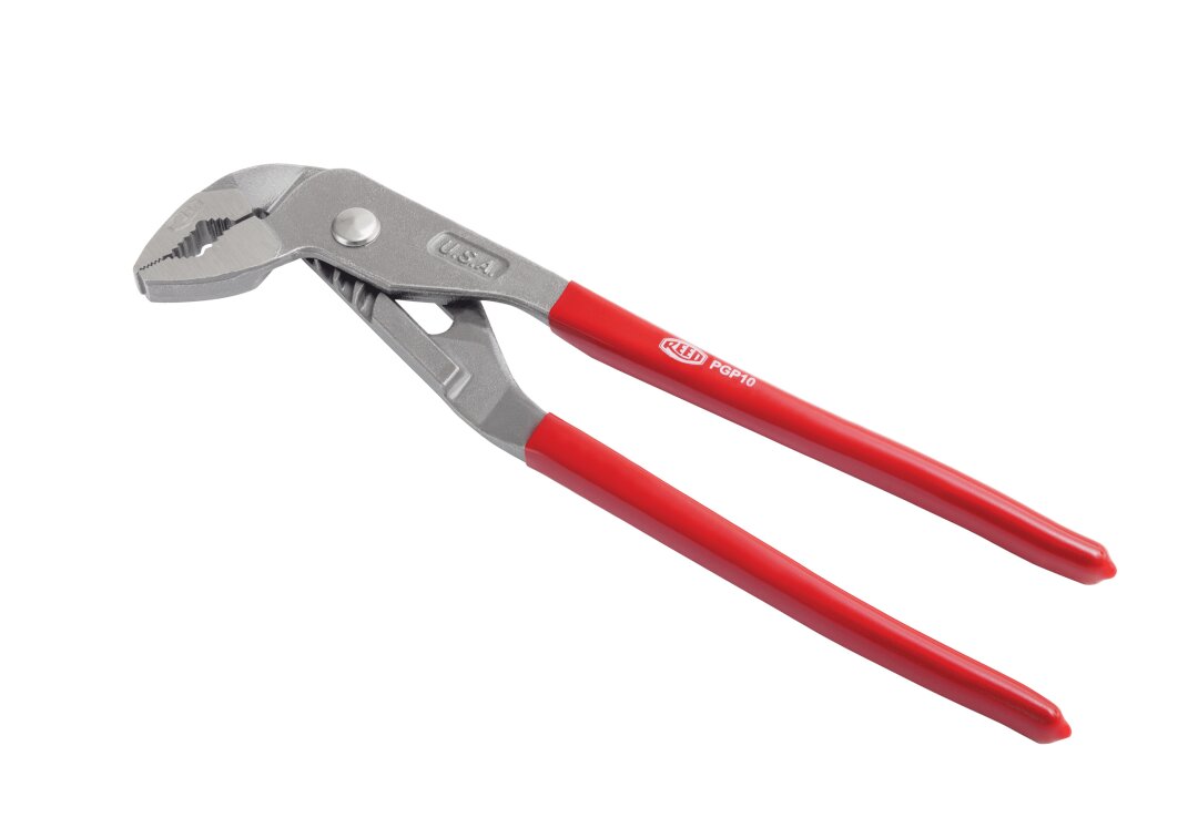 Positive Grip Pliers offer a combination of jaw design, offset head, handle, and tongue-and-groove design. They only requires downward pressure on handle, no squeezing, once pliers are engaged. Smooth tongue-and-groove action makes these the most effective pliers on the market for one-hand operation. Patented rib prevents finger pinching. Positive grip pliers are forged from high quality, high carbon steel and fully heat-treated for long life.