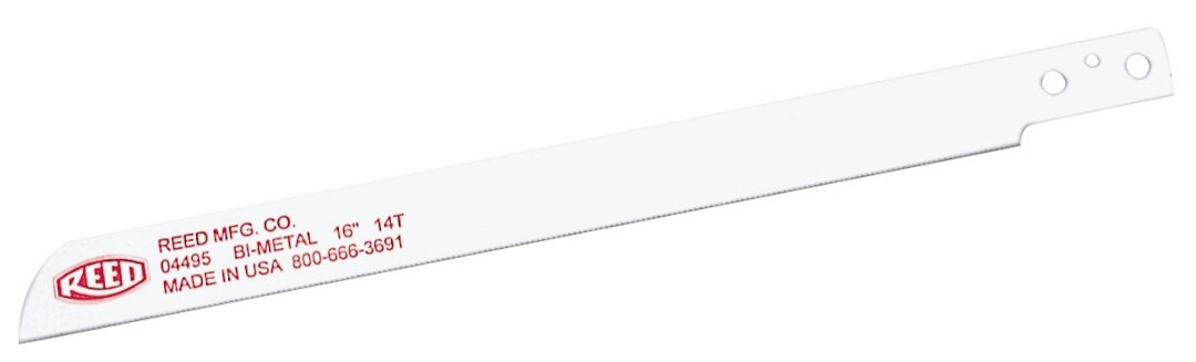 For speed, straightness of cut, long life and safety, these bi-metal, portable, power hack saw blades are the best choice for the Reed Saw It and heavy-duty power hack saws made by Widder, Fein, and Spitznas. The extra blade depth (1-3/8 in) and the Matrix high-speed steel (HSS) cutting edge allow a straighter cut. Bi-metal blade construction reduces the tendency of solid HSS blades to shatter. Wavy set and high tooth hardness yield longer life blade life. Portable power hack saw blades cut copper, steel, stainless steel, aluminum, and harder plastics like PVC and ABS.