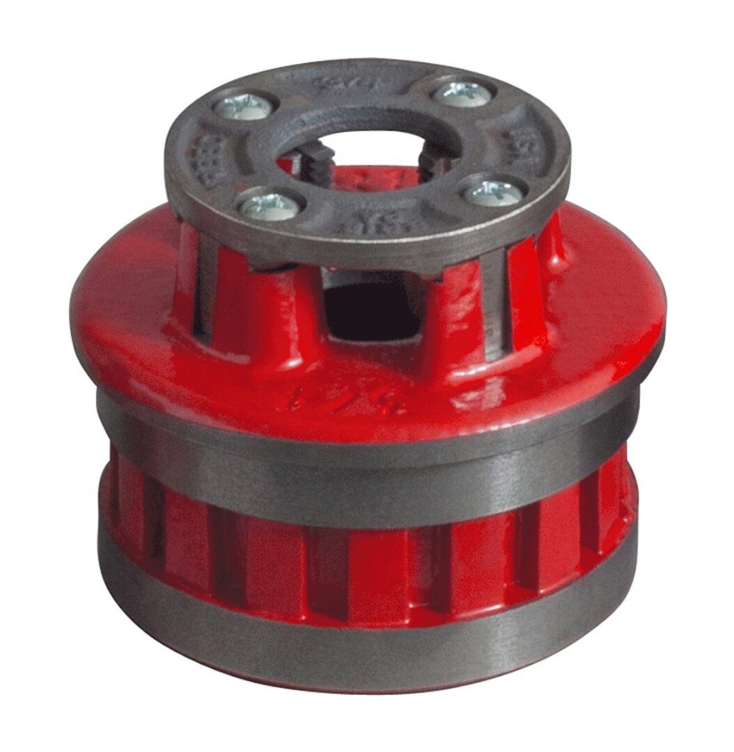 R12+ Dropheads ship completely assembled and ready to use with HSS segmental dies already in place. R12+ Dropheads can be used manually with the R12RRHC ratchet ring and handle or with 700PD, 700APD and 701PD. R12+ dropheads are interchangeable with RIDGID 12-R dropheads and can also be utilized in the RIDGID 700 power drive.