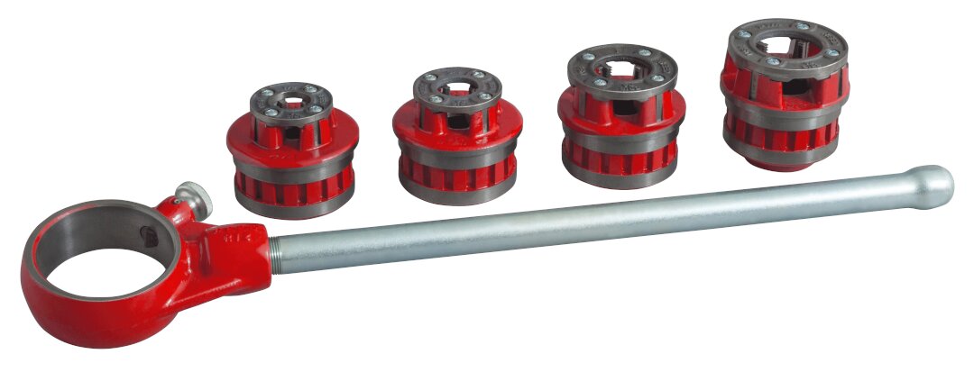 R12+ Drop head Threader Sets include complete dropheads in sizes from 1/2 to 2 in NPT threads. Each drop head threader set has a ratchet ring and handle. In addition, the Reed R12+ ratcheting ring R12RRHC accepts all RIDGID 12-R dropheads. All drop head threader sets thread steel pipe. Dies are available in right hand (RH) configuration only. Only the "BOX" model includes a metal toolbox with pegs for the dropheads. Extra R12BOX boxes available separately.