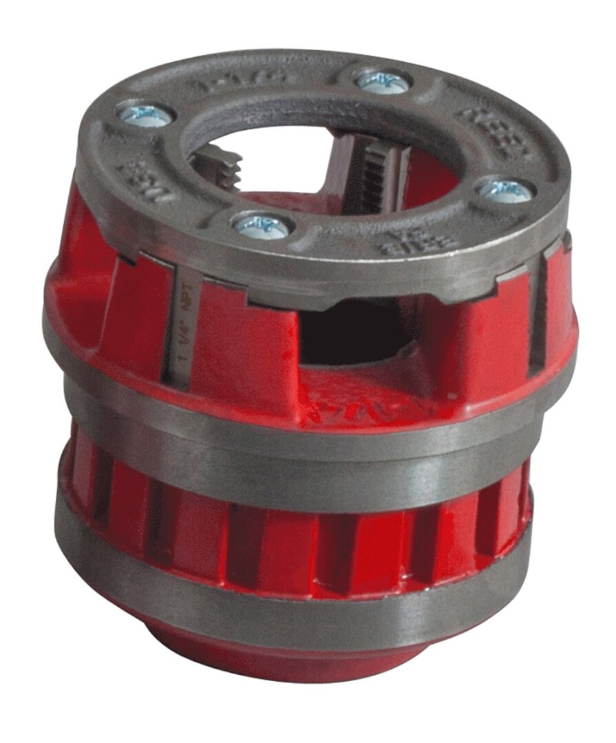 R12+ Dropheads ship completely assembled and ready to use with HSS segmental dies already in place. R12+ Dropheads can be used manually with the R12RRHC ratchet ring and handle or with 700PD, 700APD and 701PD. R12+ dropheads are interchangeable with RIDGID 12-R dropheads and can also be utilized in the RIDGID 700 power drive.