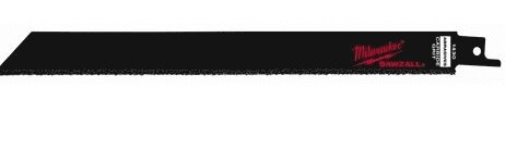 Milwaukee® SAWZALL™ Reciprocating Saw Blade, Heavy Duty High Performance Straight Back, 9 in Length, 3/4 in Width, 0.039 in Thickness, 1/2 in Tang, Universal/Toothed Edge Tang, Tungsten Carbide Cutting Edge, Bright, Applicable Materials: Ceramic Tile, Plaster, Masonry, Brick, Fiberglass and other Abrasive Materials