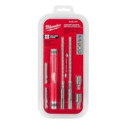Get the Milwaukee® Tapcon® screw installation kit to drill and drive Tapcon screws with only a SDS PLUS™ rotary hammer. This kit contains all you need to install common flat head and hex head concrete screws. The Milwaukee® SDS PLUS™ Bits with 1/4 in Hex are designed specifically for Tapcon® screw applications. Built to take on masonry and rebar, Milwaukee® SDS bits feature 2-cutter geometry for fast drilling and debris removal. The patented, reinforced flute design increases impact resistance and transfers energy directly to the bit tip. Patented rebar chamfers withstand impact from rebar and hard aggregate and reduce carbide chipping. The kit contains a 5/32 x 7 in SDS PLUS™ bit with hex, a 3/16 x 7 in SDS PLUS™ bit with hex, a drive sleeve to connect system components, hex drive bits sized 1/4 in and 5/16 in, a #2 Phillips Driver Bit and a #3 Phillips Driver Bit, all in a durable carrying pouch. Tapcon(R) is a registered trademark of Illinois Tool Works Inc.
