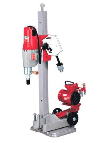 This contractor series small base stand features a cast aluminum base with 4 levelling screws for fast accurate levelling adjustment. The durable precision-ground 2-1/2 in Steel column is 43-1/2 in H and has a universal motor adapter plate. The reversible feed handle helps the operator use the unit from either side. Model 4115-22 comes with model 4096 coring motor, Vac-U-RigŪ kit as well as a meter box. The Vac-U-RigŪ assembly uses a vacuum pump to apply suction to a large pad mounted on the bottom of the rig. This aids in stability when coring holes.