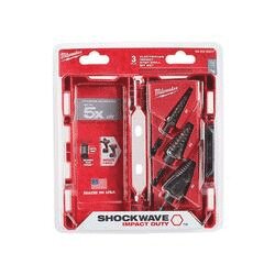 Shockwave™ Impact Duty™ electrical step bits are engineered to deliver the most durable and fastest impact step bit hole drilling solution. Our step drill bits are made in the USA with global materials and give you best-in-class performance in impact drivers with the versatility to be used in drills. The 1/4 in hex shank has an optimized ShockZone™ body providing you with the industry's most durable shank, reducing early shank breaks. A titanium aluminum nitride (TiAlN) coating helps deliver you 5X longer life, while the step drill bits Rapid Strike™ tip and dual spiral flute produce 2X faster holes. Our step drill bit kit features the #1 1/8 to 1/2, #4 3/16 to 7/8 and #9 7/8 and 1-1/8 in step bits with laser engraving for a clear stop on size identification.