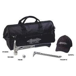 The Stiletto® CB5TB is a 5-piece TiBone combo kit. The combo kit contains a 15 oz titanium hammer with a replaceable steel face, 12 in clawbar titanium nail puller, extra replaceable face, black embroidered Stiletto® cap and Black Stiletto® tool bag. The powerful and lightweight titanium hammer delivers 10 times less recoil than steel. The CB5TB has a titanium claw bar with a patented dimpler feature that allows users to create a recess around the nail head to get the claws under the nails and reduces damage to materials. Stiletto® tool company has been synonymous with high quality hand tools dating back to 1849. With its long history and strong reputation, the brand has evolved into the modern day standard for innovative, lightweight, ergonomic, productive and professional tools. We set the standard with our line of premium titanium hand tools that span numerous trades such as framing, remodeling, finish work, siding, demolition, concrete and drywall. Titanium is 45% lighter weight while providing the same striking force and strength as steel. Titanium tools also produce 10 times less recoil shock which helps reduce carpal tunnel syndrome. The combination of these features means less down time, more productivity and most importantly less pain while working.