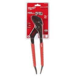 The Milwaukee® 12 in REAM & PUNCH™ straight jaw pliers incorporate exposed metal handles (patent pending) and a precision ground pliers head for reaming pipe and punching electrical knock outs. The pliers' teeth are hardened for secure grip over the life of the tool. Milwaukee® pliers feature slim profile over molded comfort grips, which will not peel under jobsite conditions. All Milwaukee® pliers are forged for strength and feature rust protection for long life.