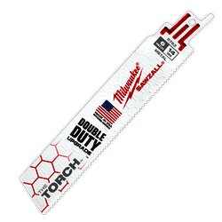The Torch™ metal-cutting blades with the Double Duty Upgrade™ feature a tooth form optimized for the longest life and maximum durability. Tough Neck™ is engineered to protect against tang breakage and delivers the strongest Sawzall® blade tang on the market. Grid Iron™ features a stamped honeycomb pattern throughout the body of the blade that greatly increases the rigidity of the blade, making it the stiffest metal cutting Sawzall® blade on the market. These blades are ideal for making tough, straight cuts.