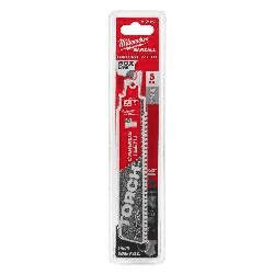 THE Torch™ with carbide teeth has been engineered to deliver extreme life and unmatched versatility in thick and extreme metal cutting applications. This blade delivers upto 50X life over standard blades. THE Torch™ with carbide teeth tackles a wide variety of metal materials ranging from black pipe and angle iron to cast iron, stainless steel and high strength alloys. Having 25% more carbide per tooth than other carbide blades and a optimized tooth design deliver extreme life in metal cutting applications.