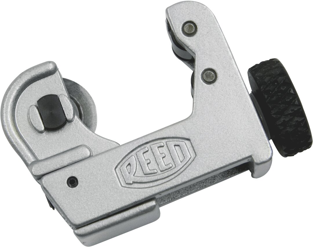 Mini cutters can be used on copper, steel, stainless steel and aluminum tubing in confined spaces. MC2, MC2GRIP and MC3 have zinc die castings for long service life and are painted with durable silver epoxy for corrosion protection. Large high-torque knobs on the MC2GRIP and MC3 provide easy feeding. MC1 needs only 1 1/4 in radial clearance, features smallest cutting diameter in the industry and uses a fine screw thread for easy tightening.