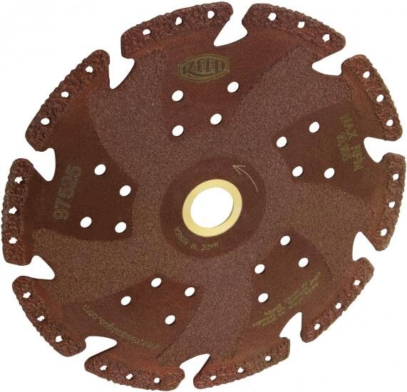 Blades available for pneumatic and hydraulic Universal Reed Pipe Cutters. Blades for steel pipe give operators a great new use for the UPC! Note When cutting steel pipe with the steel blades or "Dia" blades, sparks are possible and expected. Because of the sparks, the UPC cannot be used for cold cuts. 97511 PVC pipe bevel cutter for the UPC produces a 15 degree bevel on the pipe. Caution When cutting steel, ductile iron, or cast iron, the UPC can produce sparks. When cutting PE, the UPC may cause a build-up of static electricity. Do not use the UPC saw in-line on potentially explosive or otherwise dangerous situations. The line must be verified as completely purged of any flammable vapor or liquid.